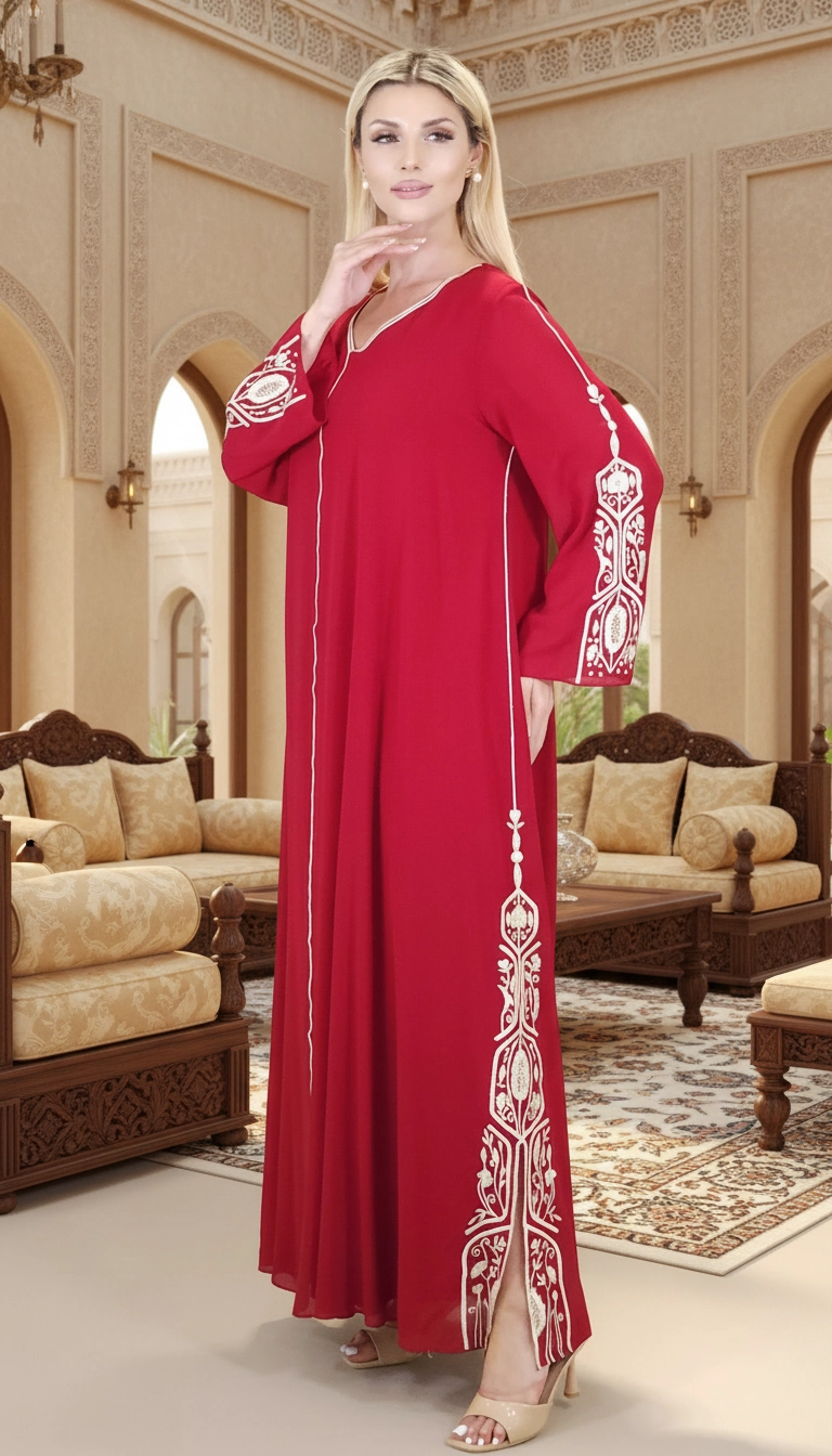 جلابية من الشيفون مطرزة ومزينة بالخرز