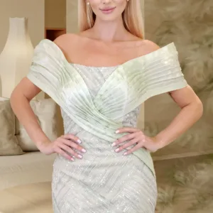 فستان من الساتان شفاف الكتفين مزين بأسياخ